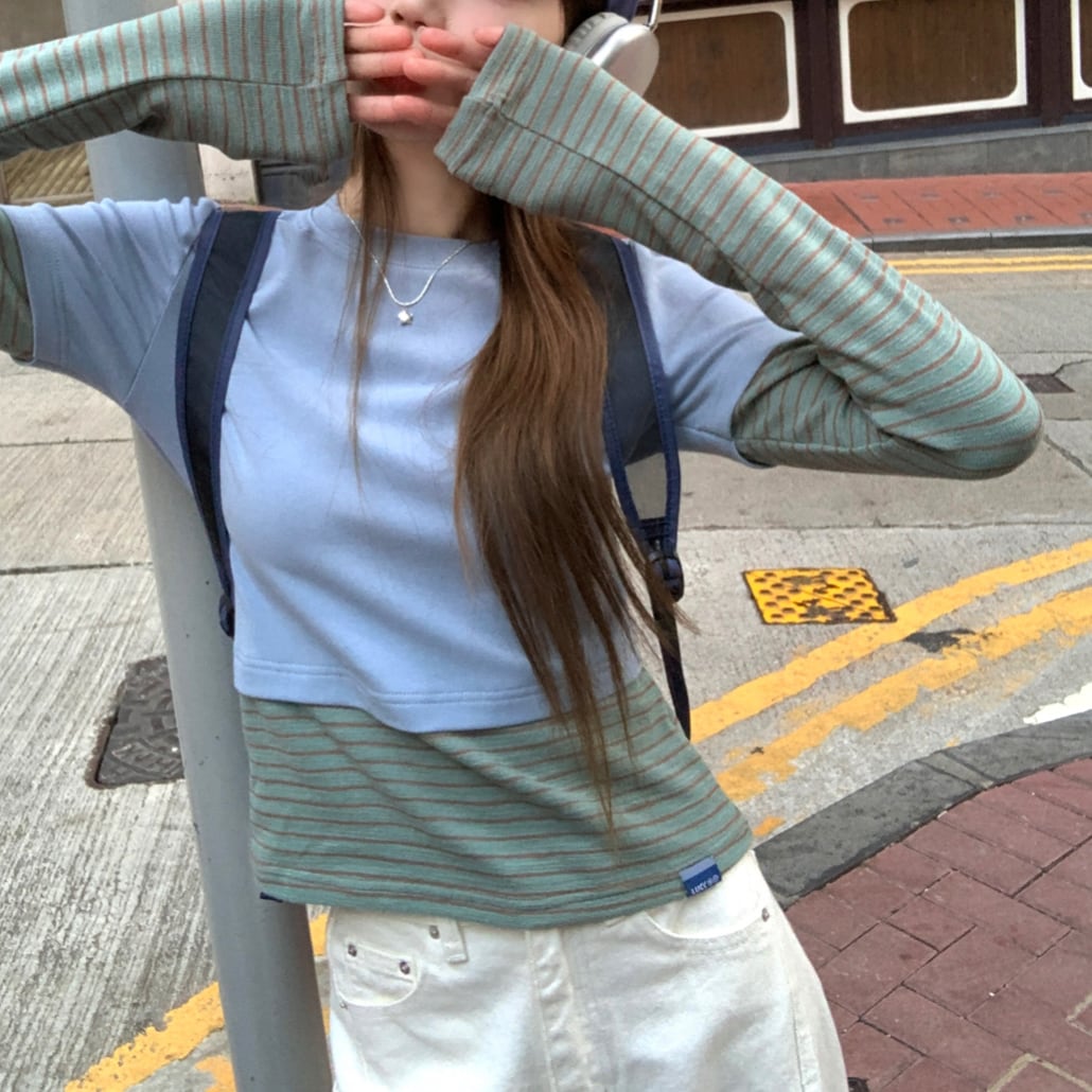 レイヤードスタイルが簡単に楽しめるトップスです* ■カラー blue pink ■サイズ S 肩幅:35㎝ 胸囲:76cm 袖丈:65cm 着丈:52㎝ M 肩幅:36㎝ 胸囲:80cm 袖丈:66cm 着丈:53cm ※海外製品につき若干の誤差がある場合がございます。 model▶160cm 40㎏ Sサイズ着用 ■素材 綿 商品コード:A0057 【注意事項】 ・商品サイズが日本のサイズ規格より小さい場合がございます。 ・海外製品にて、日本の検品基準と異なるため縫製などが若干甘い場合がございます。 ・海外倉庫にて保管をしております。在庫情報に時差が生じるため在庫切れや生産中止、生産に遅れがある場合には、受注後でもキャンセルさせていただく恐れがございます。 ・商品の色味はお手持ちのスマートフォンの画面によって実物と若干異なる場合がございます。 ・イメージ違いやサイズ交換等、お客様ご都合による交換、返品の対応は出来かねます。 <お届けについて〉 海外より取り寄せ・発送となるため ご入金から1-3週間でお届けいたします。 ※ご購入前に必ずショップABOUTをご確認ください。
