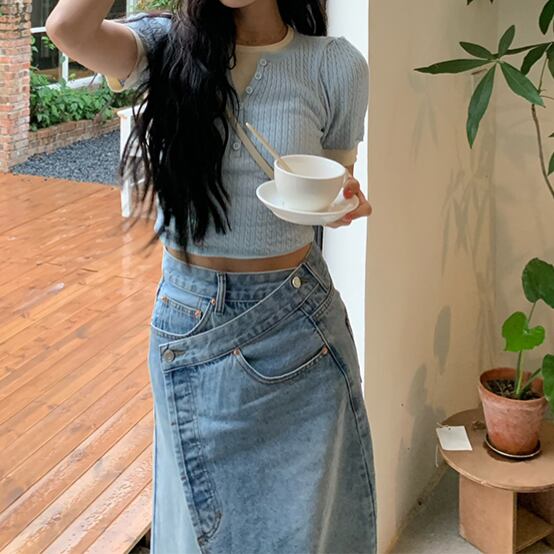 デニム素材のアシンメトリーロングラップスカートです* シンプルなトップスと合わせるだけで、こなれたスタイルが完成します♪ カジュアルなアイテムですが、ロング丈とラップデザインで、大人っぽく着こなせます◎ 様々なコーディネートに合わせやすいので、デイリーユースにぴったりです! ■カラー blue ■サイズ XS ウエスト:64cm 着丈:87cm S ウエスト:68cm 着丈:95cm M ウエスト:72cm 着丈:96cm L ウエスト:76cm 着丈:97cm ※海外製品につき若干の誤差がある場合がございます。 model▶165cm 48㎏ Sサイズ着用 【注意事項】 ・商品サイズが日本のサイズ規格より小さい場合がございます。 ・海外製品にて、日本の検品基準と異なるため縫製などが若干甘い場合がございます。 ・海外倉庫にて保管をしております。在庫情報に時差が生じるため在庫切れや生産中止、生産に遅れがある場合には、受注後でもキャンセルさせていただく恐れがございます。 ・商品の色味はお手持ちのスマートフォンの画面によって実物と若干異なる場合がございます。 ・イメージ違いやサイズ交換等、お客様ご都合による交換、返品の対応は出来かねます。 <お届けについて〉 海外より取り寄せ・発送となるため ご入金から1-3週間でお届けいたします。 ※ご購入前に必ずショップABOUTをご確認ください。