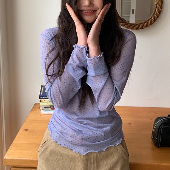 ハイネックとメロウデザインが上品なシアー素材のトップスです* カジュアルなボトムスと合わせても、きれいめな印象に仕上げてくれます♪ 一枚で着ても、レイヤードスタイルにも活躍すること間違いなし◎ ■カラー purple beige ■サイズ S 肩幅:35cm 胸囲:80cm 着丈:55cm 袖丈:59cm M 肩幅:36cm 胸囲:84cm 着丈:56cm 袖丈:60cm L 肩幅:37cm 胸囲:88cm 着丈:57cm 袖丈:61cm ※海外製品につき若干の誤差がある場合がございます。 model▶162cm 44㎏ Sサイズ着用 ■素材 ポリエステル95%、スパンデックス5% 【注意事項】 ・商品サイズが日本のサイズ規格より小さい場合がございます。 ・海外製品にて、日本の検品基準と異なるため縫製などが若干甘い場合がございます。 ・海外倉庫にて保管をしております。在庫情報に時差が生じるため在庫切れや生産中止、生産に遅れがある場合には、受注後でもキャンセルさせていただく恐れがございます。 ・商品の色味はお手持ちのスマートフォンの画面によって実物と若干異なる場合がございます。 ・イメージ違いやサイズ交換等、お客様ご都合による交換、返品の対応は出来かねます。 <お届けについて〉 海外より取り寄せ・発送となるため ご入金から1-3週間でお届けいたします。 ※ご購入前に必ずショップABOUTをご確認ください。