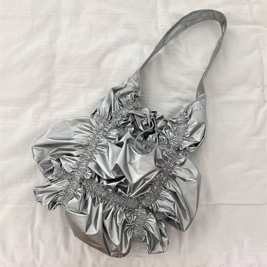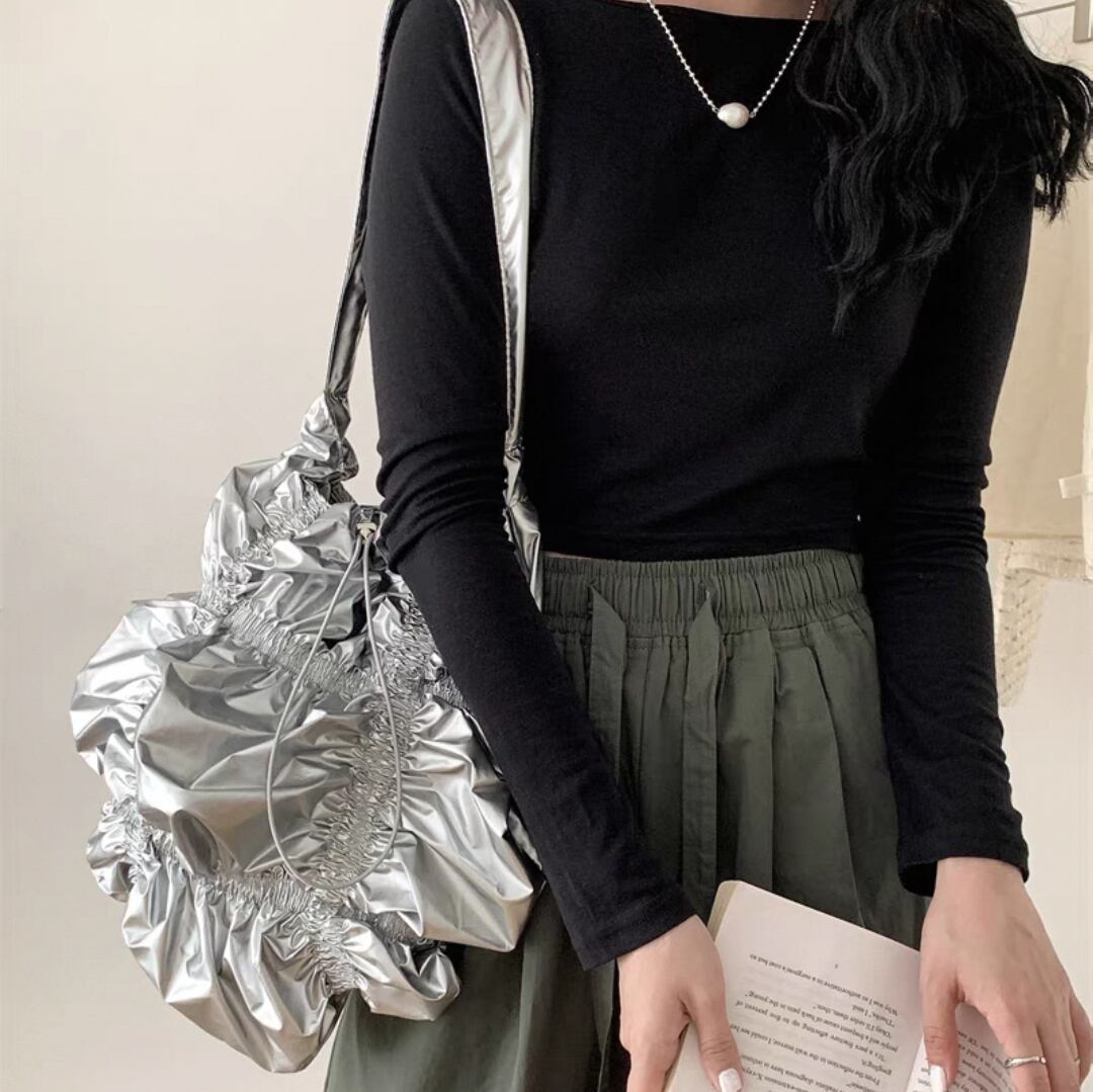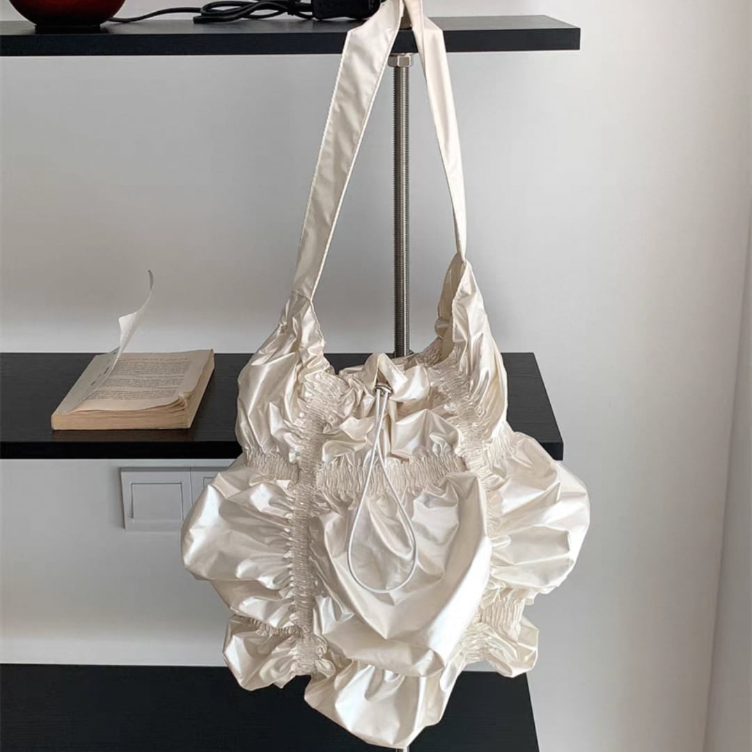 シャーリングデザインが目を惹くショルダーバッグ* ドローストリングで開閉するデザインと、上品なシルエットが魅力です。 デイリーユースはもちろん、ちょっとしたお出かけにもぴったり♪ どんなスタイルにも合わせやすく、普段使いから特別な日にも活躍します◎ ■カラー black silver white pink brown ■サイズ 幅27.5㎝、高さ31.5㎝、奥行き11cm、ショルダー長さ55.5㎝ ※海外製品につき若干の誤差がある場合がございます。 【注意事項】 ・商品サイズが日本のサイズ規格より小さい場合がございます。 ・海外製品にて、日本の検品基準と異なるため縫製などが若干甘い場合がございます。 ・海外倉庫にて保管をしております。在庫情報に時差が生じるため在庫切れや生産中止、生産に遅れがある場合には、受注後でもキャンセルさせていただく恐れがございます。 ・商品の色味はお手持ちのスマートフォンの画面によって実物と若干異なる場合がございます。 ・イメージ違いやサイズ交換等、お客様ご都合による交換、返品の対応は出来かねます。 <お届けについて〉 海外より取り寄せ・発送となるため ご入金から1-3週間でお届けいたします。 ※ご購入前に必ずショップABOUTをご確認ください。