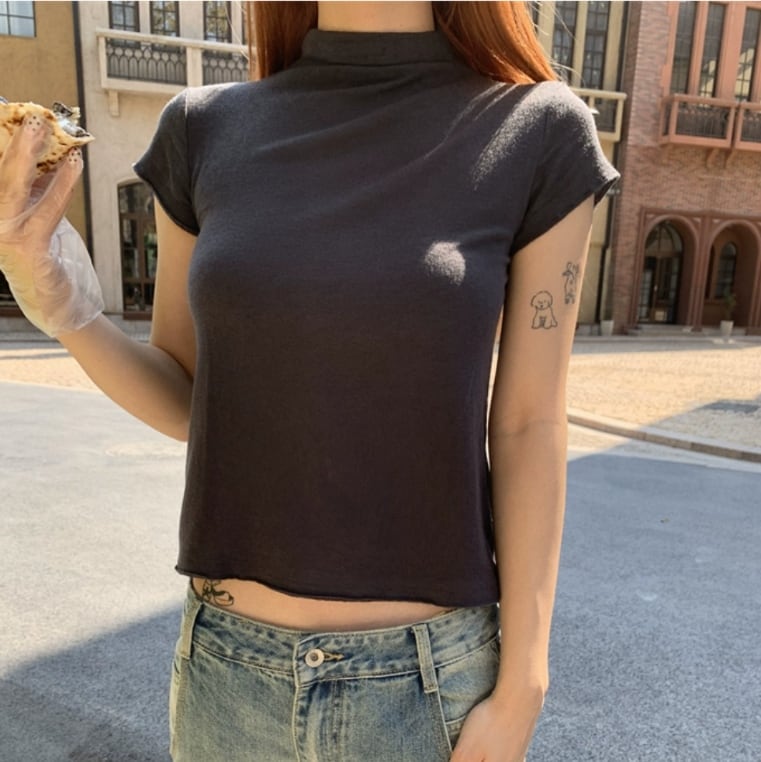 ハイネックのショートスリーブTシャツは、シンプルながらも着こなしの幅が広がるアイテムです* 一枚で着るのはもちろん、デニムやスカートなど、様々なボトムスと合わせやすいので、デイリーユースにぴったり♪ どんなスタイルにも合わせやすく、着回し力抜群です◎ ■カラー orange gray purple white ■サイズ S 着丈:49㎝ 胸囲:76㎝ 肩幅:33㎝ 袖丈:8㎝ M 着丈:50㎝ 胸囲:80㎝ 肩幅:35㎝ 袖丈:9㎝ L 着丈:51㎝ 胸囲:84㎝ 肩幅:37㎝ 袖丈:10㎝ ※海外製品につき若干の誤差がある場合がございます。 model▶169cm 45㎏ Sサイズ着用 【注意事項】 ・商品サイズが日本のサイズ規格より小さい場合がございます。 ・海外製品にて、日本の検品基準と異なるため縫製などが若干甘い場合がございます。 ・海外倉庫にて保管をしております。在庫情報に時差が生じるため在庫切れや生産中止、生産に遅れがある場合には、受注後でもキャンセルさせていただく恐れがございます。 ・商品の色味はお手持ちのスマートフォンの画面によって実物と若干異なる場合がございます。 ・イメージ違いやサイズ交換等、お客様ご都合による交換、返品の対応は出来かねます。 <お届けについて〉 海外より取り寄せ・発送となるため ご入金から1-3週間でお届けいたします。 ※ご購入前に必ずショップABOUTをご確認ください。