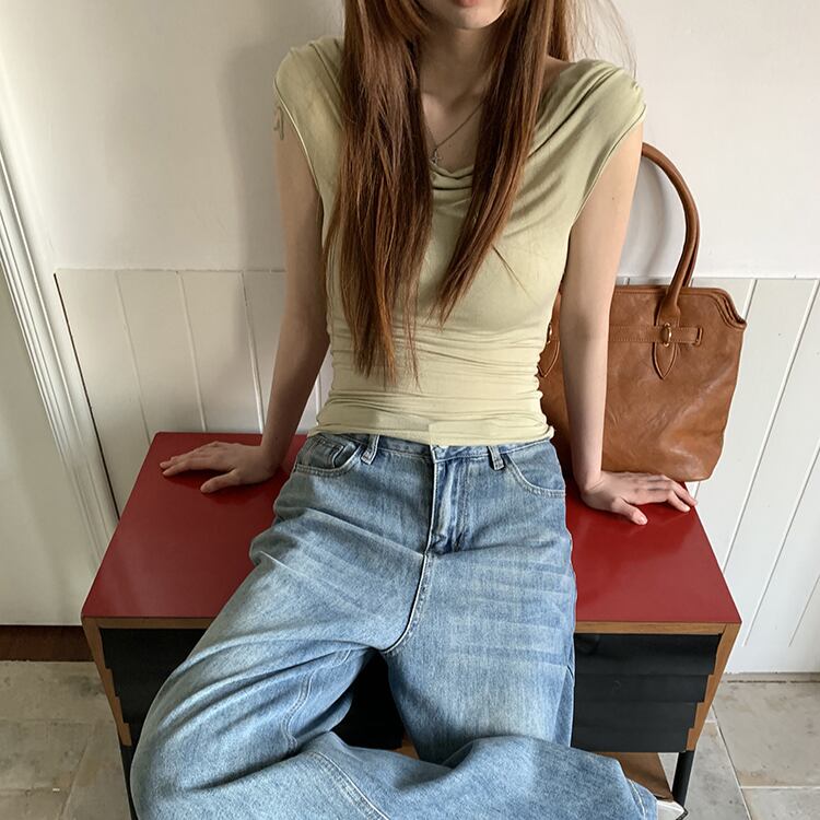 Back Open French Sleeve Top 1color A0191