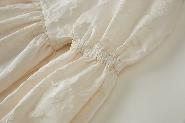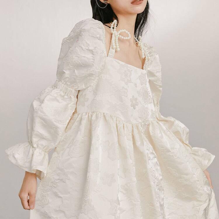 Puff Sleeve Shirring Square Neck A-Line Long Dress 2color A0003