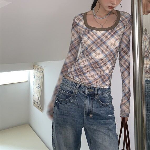 程よく透け感のあるメッシュ素材と、可愛らしいチェック柄が魅力のトップスです* ロングスリーブで季節感もプラス◎ ワンピースやデニムと合わせたり、着こなしの幅が広がります♪ ■カラー pink blue ■サイズ S 肩幅: 32cm 胸囲: 76cm 着丈: 54cm 袖丈: 64cm M 肩幅: 33cm 胸囲: 80cm 着丈: 55cm 袖丈: 65cm L 肩幅: 34cm 胸囲: 84cm 着丈: 56cm 袖丈: 66cm ※海外製品につき若干の誤差がある場合がございます。 model▶163㎝ 45㎏ Sサイズ着用 ■素材 ポリエステル 【注意事項】 ・商品サイズが日本のサイズ規格より小さい場合がございます。 ・海外製品にて、日本の検品基準と異なるため縫製などが若干甘い場合がございます。 ・海外倉庫にて保管をしております。在庫情報に時差が生じるため在庫切れや生産中止、生産に遅れがある場合には、受注後でもキャンセルさせていただく恐れがございます。 ・商品の色味はお手持ちのスマートフォンの画面によって実物と若干異なる場合がございます。 ・発送時期によりデザイン仕様(細部、素材など)変更がある場合がございます。 ・イメージ違いやサイズ交換等、お客様ご都合による交換、返品の対応は出来かねます。 <お届けについて〉 海外より取り寄せ・発送となるため ご入金から1-3週間でお届けいたします。 ※ご購入前に必ずショップABOUTをご確認ください。