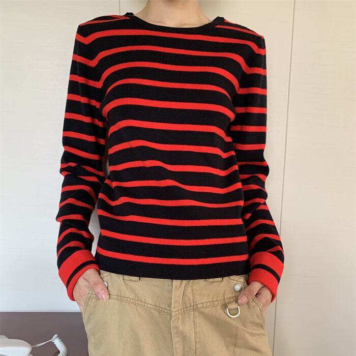 定番のボーダー柄が着こなしに程よいアクセントをプラス。ロングスリーブで、季節の変わり目にも活躍します。カジュアルなボトムスと合わせても、上品な印象を与え、着回し力抜群です♪ ■カラー pink red ■サイズ S 肩幅:32cm 胸囲:72cm 着丈:58cm 袖丈:62cm M 肩幅:34cm 胸囲:76cm 着丈:59cm 袖丈:63cm L 肩幅:36cm 胸囲:80cm 着丈:60cm 袖丈:64cm ※海外製品につき若干の誤差がある場合がございます。 model▶163cm 45㎏ Sサイズ着用 ■素材 綿 【注意事項】 ・商品サイズが日本のサイズ規格より小さい場合がございます。 ・海外製品にて、日本の検品基準と異なるため縫製などが若干甘い場合がございます。 ・海外倉庫にて保管をしております。在庫情報に時差が生じるため在庫切れや生産中止、生産に遅れがある場合には、受注後でもキャンセルさせていただく恐れがございます。 ・商品の色味はお手持ちのスマートフォンの画面によって実物と若干異なる場合がございます。 ・イメージ違いやサイズ交換等、お客様ご都合による交換、返品の対応は出来かねます。 <お届けについて〉 海外より取り寄せ・発送となるため ご入金から1-3週間でお届けいたします。 ※ご購入前に必ずショップABOUTをご確認ください。